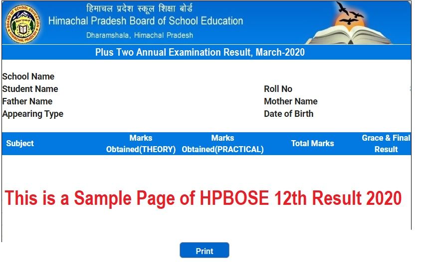 Details Mentioned on the HP Board 12th Result 2025: