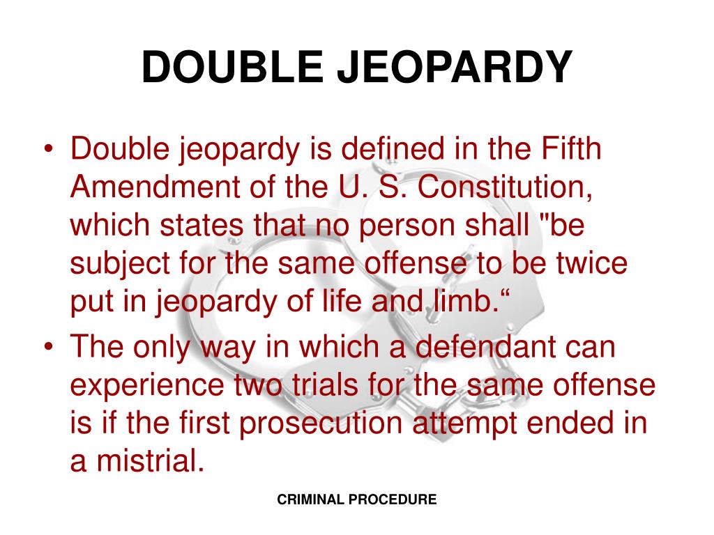 Double jeopardy, a cornerstone of legal systems in many countries including the United States, safeguards individuals from being tried more than once for the same crime. This fundamental principle, rooted in the Fifth Amendment of the U.S. Constitution, aims to prevent the government from relentlessly pursuing a conviction against a defendant, even after an acquittal or dismissal. It protects citizens from harassment, undue expense, and the risk of wrongful conviction that could arise from repeated trials.